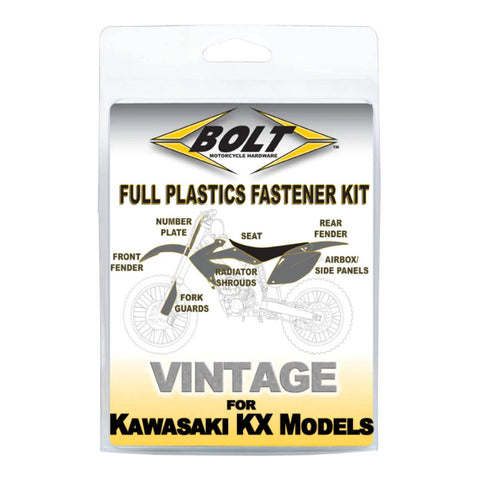 Bolt Plastics Fastener kits are carefully researched and designed to include all the fasteners, shoulder bolts and aluminium bushings needed when replacing the fork guards, mudguards, number plates, radiator shrouds and seats.