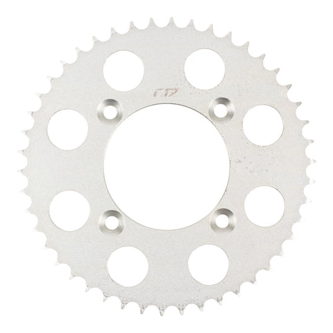 MTX OE Steel sprockets are strong and durable, heat-treated and hand-finished for longevity. Front sprockets are constructed from SCM420 chromoly steel alloy where rear sprockets are constructed from C45 high carbon steel with a Zinc electroplated finish. Designed as an OEM replacement to exceed OEM specifications at a fraction of the price, making them your ideal cost-effective solution for replacing old worn and warped sprockets.