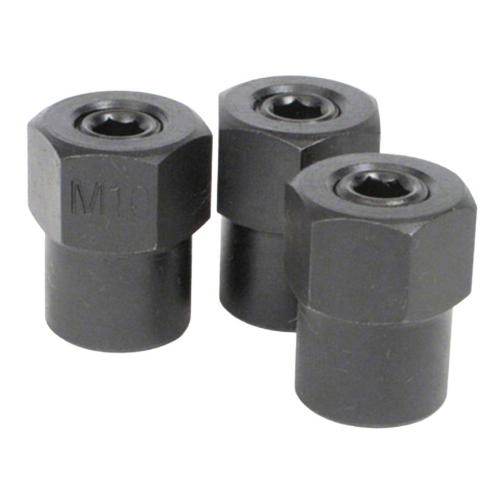 The Whites Stud Installation Tool Set aids in the fast and easy installation of threaded studs while preventing damage to the stud thread, ideal for installation of engine and exhaust studs. Including three different thread sizes all with a 3/4" (19mm) hex head and 5.5mm Allen key for easy operation. Constructed from industrial quality steel for strength and durability and a black oxide finish for corrosion resistance.